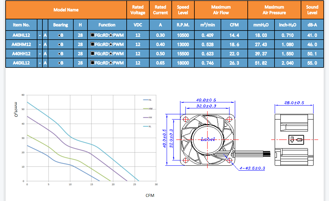 叶轮:塑料(UL94V-0) 框架:塑料(UL94V-0) 引线:定制 重量:45克 框架类型:封闭法兰
