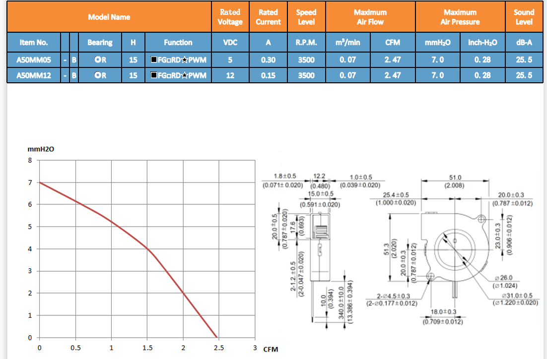 叶轮:塑料(UL94V-0) 框架:塑料(UL94V-0) 引线:定制 重量:6g 框架类型:封闭法兰