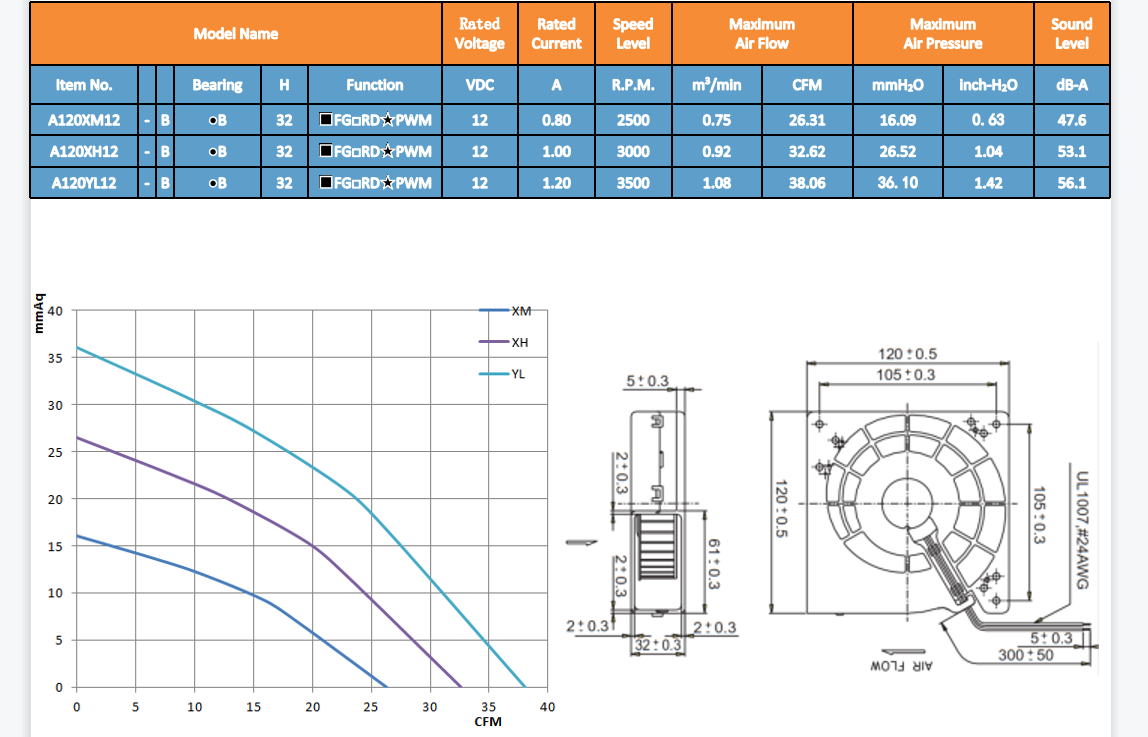 叶轮:塑料(UL94V-0) 框架:塑料(UL94V-0) 引线:定制 重量:36克 框架类型:封闭法兰