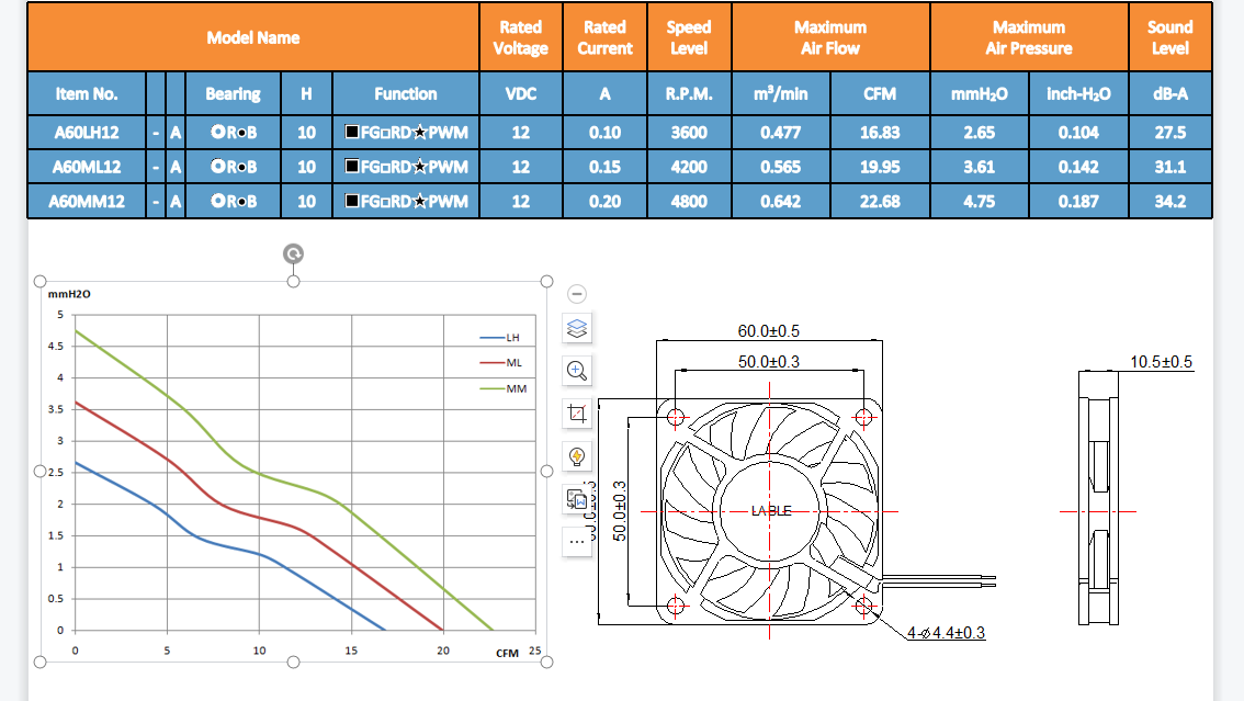 叶轮:塑料(UL94V-0) 框架:塑料(UL94V-0) 引线:定制 重量:23克 框架类型:封闭法兰