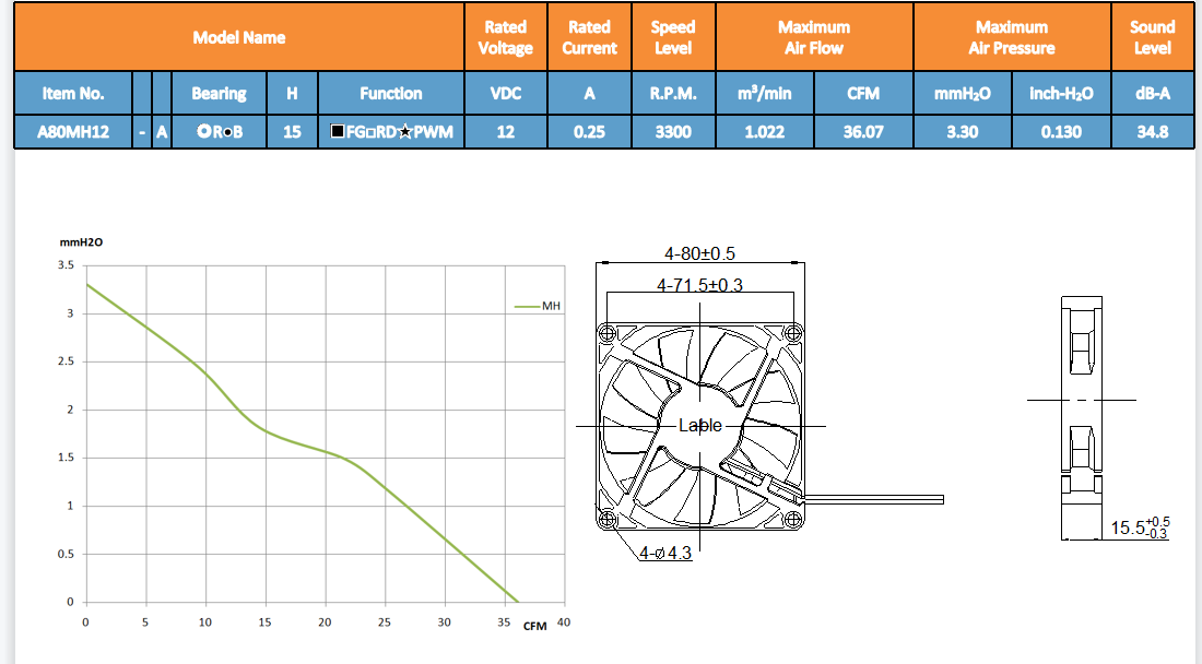 叶轮:塑料(UL94V-0) 框架:塑料(UL94V-0) 引线:定制 重量:8克 框架类型:封闭法兰
