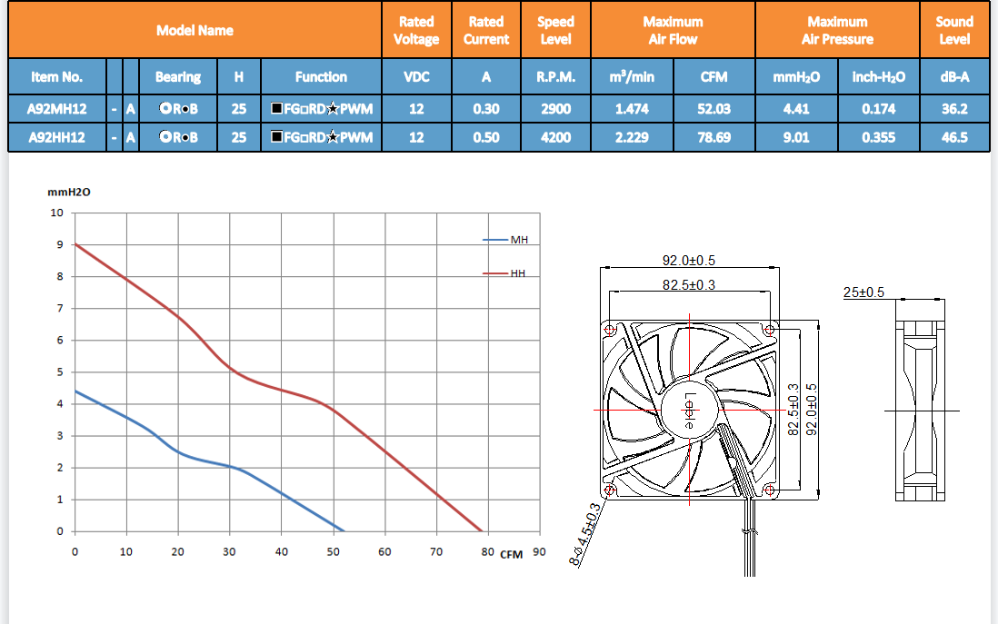 叶轮:塑料(UL94V-0) 框架:塑料(UL94V-0) 引线:定制 重量:22克 框架类型:封闭法兰