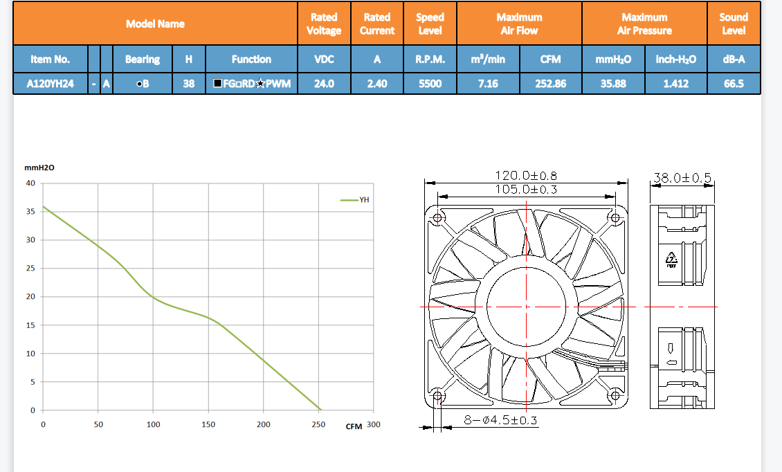 叶轮:塑料(UL94V-0) 框架:塑料(UL94V-0) 引线:定制 重量:36克 框架类型:封闭法兰
