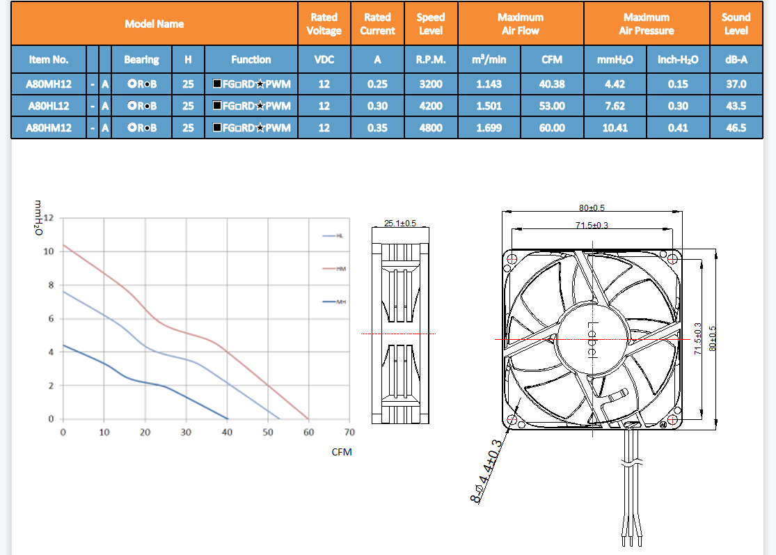 叶轮:塑料(UL94V-0) 框架:塑料(UL94V-0) 引线:定制 重量:22克 框架类型:封闭法兰